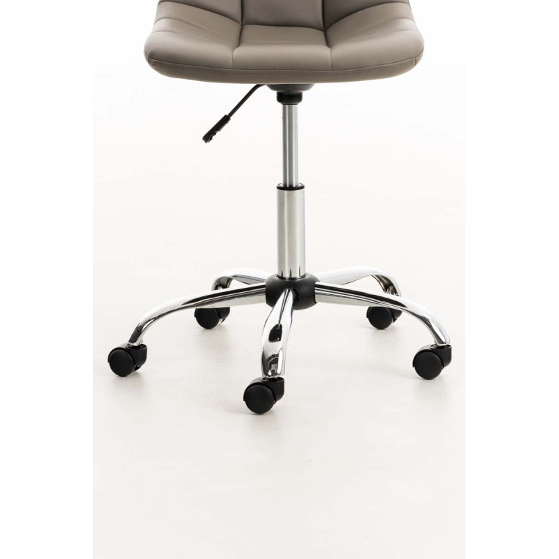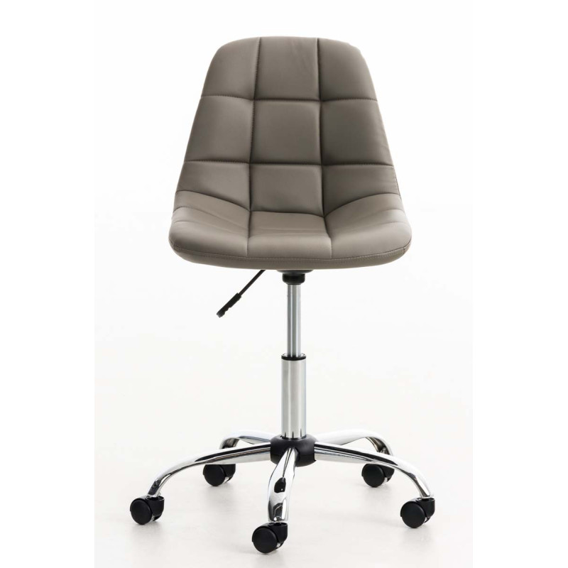 La combinación de metal y cuero sintética le da calidez a la silla, está se integra fácilmente a diversos entornos y combina con diferentes conceptos decorativos. El tapizado de tela es cómodo y transpirable, el asiento de la silla es giratorio para poder ofrecer una gran libertad de movimiento, la altura del mismo es regulable, tan sólo con presionar la palanca situada debajo del asiento. El soporte de la silla es metálico y ofrece una gran estabilidad; el soporte tiene un efecto cromado brillante que contrasta con el color del asiento. La silla viene con 5 ruedas que se deslizan sin problemas sobre cualquier tipo de superficie, ya sea moqueta, parquet o azulejos.